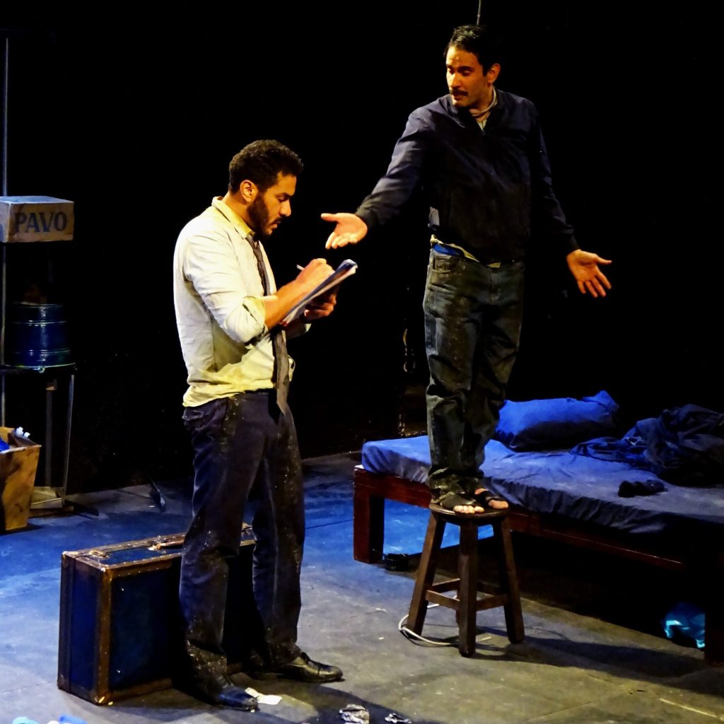 Se trata de Emigrantes, obra del dramaturgo polaco Slawomir Mrozek (1930-2013). Su autor, al igual que uno de los protagonistas del drama, tuvo que huir de Polonia por motivos políticos.