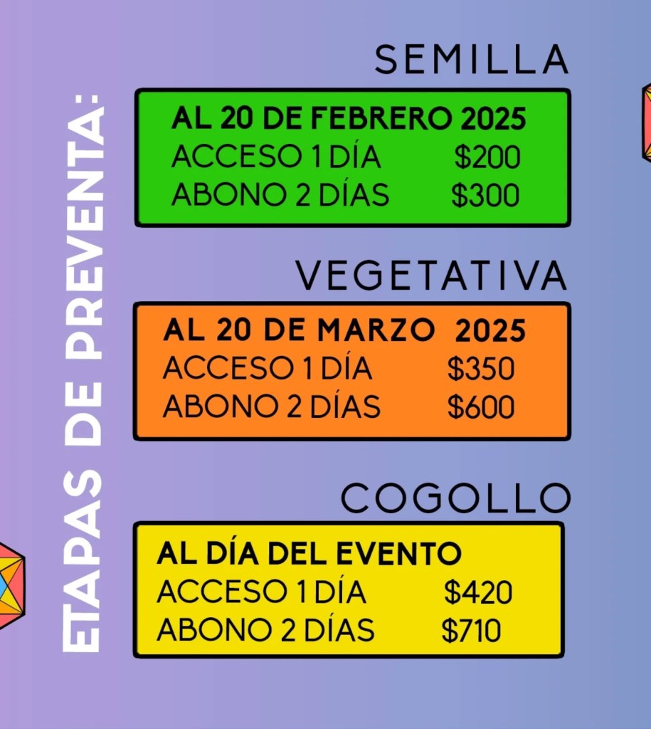- Preventa: $350 un día | $600 dos días