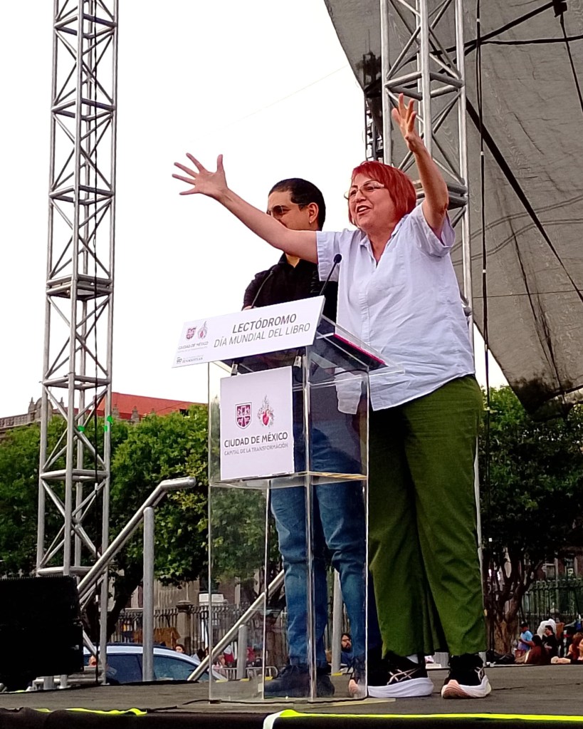 La explanada del Zócalo capitalino lució abarrotado de lectores de todas las edades en el Lectódromo por ocasión del Día Mundial del Libro; Clara Brugada, jefa de gobierno, y Francis López Bayghen, secretaria de cultura de la Ciudad de México abrieron la lectura de poemas y relatos.