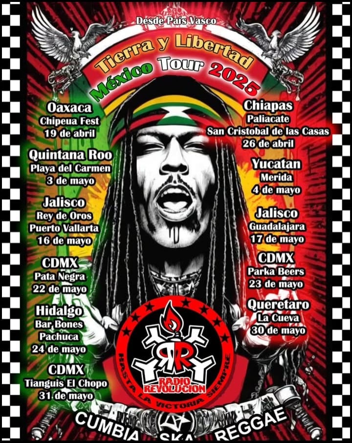 La agrupación española Radio Revolución, caracterizada por su ecléctica fusión ska, cumbia, reggae y punkestá, está de gira en el país y en esta ocasión ofrecerá tres fechas en la Ciudad de México.
