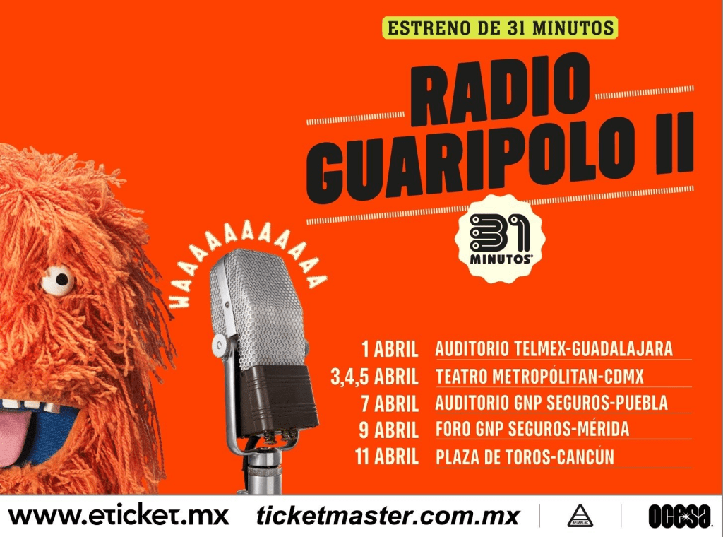 A días de su exitoso paso por el Tiny Desk Concert de NPR en Washington D.C, el programa de radio más caótico de la historia regresa al aire, de la mano de ‘Guaripolo’ el personaje favorito de los niños de 31 minutos y de todo el elenco del aclamado show. Así es, 31 minutos prepara una gira espectacular en México.